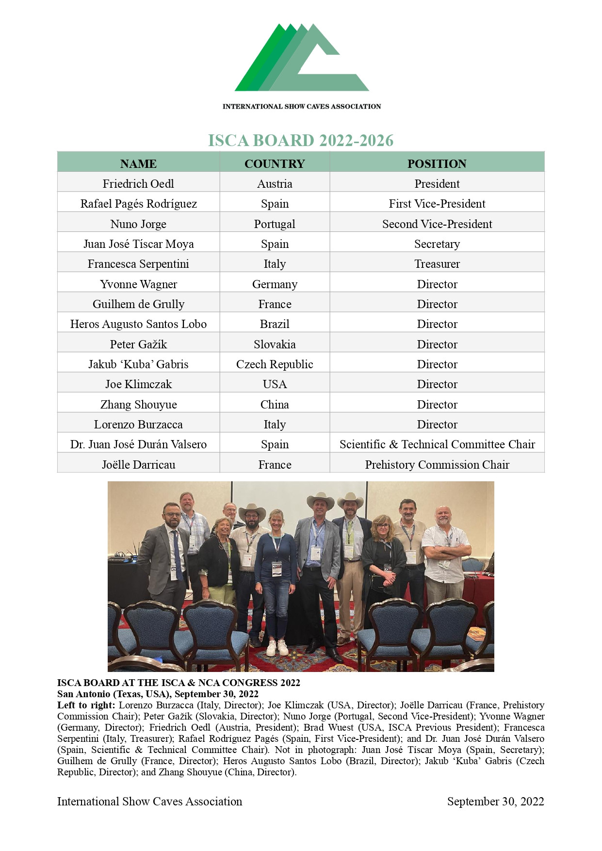 The new ISCA Board was elected at the Board Meeting which took place in San Antonio (Texas, USA) during the celebration of the ISCA & ISCA Congress 2022.
