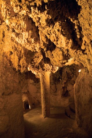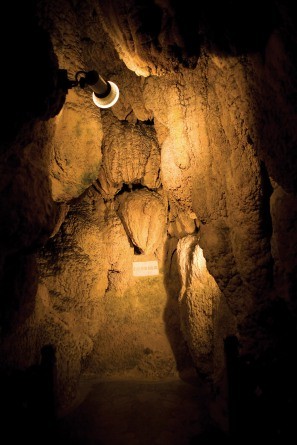 Anna Barlang (Anna Cave) is located in the small town Lillafüred, in a park with a waterfall. It is a small tufa cave, a primary cave which was formed by the deposition of the tufa from limestone rich water. A 40m thick travertine deposit was built up by the Garadna Stream during the last 150,000-200,000 years, but only in the warm perods between the Ice Ages. Pine needles, twigs, and mosses which have been incrusted by the limestone form very special fossils. The limstone cruste is a perfect negative of the original plant while the plant itself is long rotten away. The cave was discovered at the beginning of the 20th century, when a 94m long water tunnel was dug. The Hungarian poet Sándor Petöfi opened the cave, but it was soon forgotten. When the Palace Hotel was built above, 34 small cavern were conected and opened as a show cave in 1927.