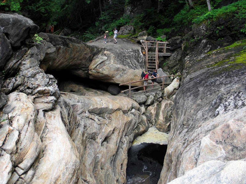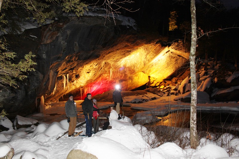 The massive stone bridge arch - the largest marble cave entrance in the east - dominates this spectacular display of Adirondack geology. Originally named Ponte de Dios (Bridge of God) by early explorers and later described in Morse’s Geography of 1790, the stone bridge has captivated visitors for over 200 years. These marble caves are different from the slow forming limestone caverns. They were rapidly formed during the last ice age by an unusual East-West trending fault which exposed a layer of ancient marble to raging acidic floodwaters from melting glaciers. So grab a walking stick, map, and camera and set out on a self-guided, above-ground, natural stone step nature trail and experience up-close the many unique rock features in the marble gorge, such as potholes, grottos, and mill site waterfalls. You can also descend into lighted surface caves with raging waterfalls or tranquil dark pools. Cavers are currently completing a survey of the cave systems and the owners have developed “Adventure Tours” to explore additional caves for those willing to crawl and get a bit dirty. The property continues to be managed by descendents of Jacob Van Benthuysen who received the site in the 1700's for Revolutionary War service. Every year new hands-on activities are added to enhance the park. After exploring the caves, relax in one of our large family swings or enjoy homemade fudge in our picnic/activity pavilions. If you want to learn more, see our Adirondack memories display or view a free PBS video describing the history and geology of the caves. Gold Rush, Crystal Quest &Gemstone Mining, Disc Golf, fish feeding, jewelry making, decorating walking sticks or uncovering ancient bones in our Dino Dig are fun activities for the kids. NEW! Over 10 miles of Snowshoe Trails are available to explore in the winter.