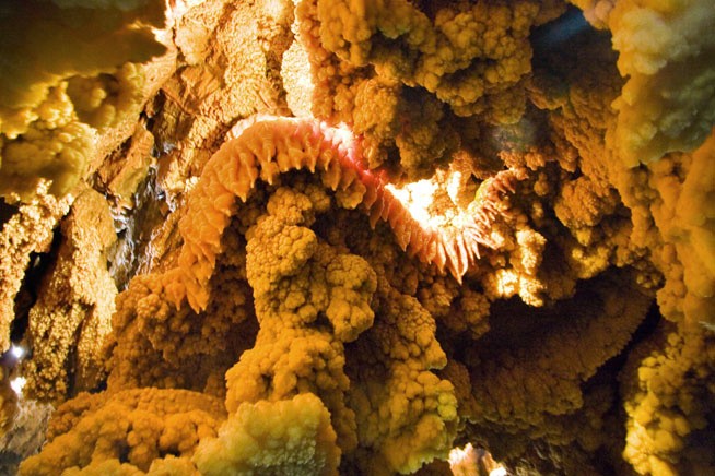 The temperature of the cave is always the same 16 is the air and 12 the water.PH is almost neutral and depth of water is measured between 0.5 to 14 meters. The water hardness is high and of lime, therefore it is not suitable for drinking. Alisadr cave is a live cave and there is no poisonous gas in it and there is no shortness of breath because air flows in naturally. Also there is no living organism in the cave due to lack of sunlight. The interesting point is that the cave is of consolidated types so that in the last five million years no rocks have fallen down, since the stalactites and stalagmites are seen of the same age. By the way until now, 11440 meters of the passages of the cave has been identified in different stages and about 2.2 kilometers is being visited by enthusiasts.