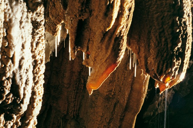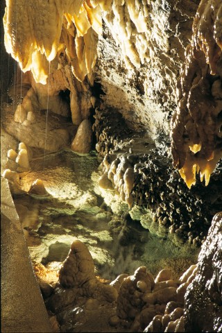 Following illuminated and easy-going trails, we can admire the many wonders of the underground world: from shining stalactites and stalagmites to polychrome flowstone, alabaster draperies, crystal-brimmed lakes, underground water-courses and bizarre forms of erosion.