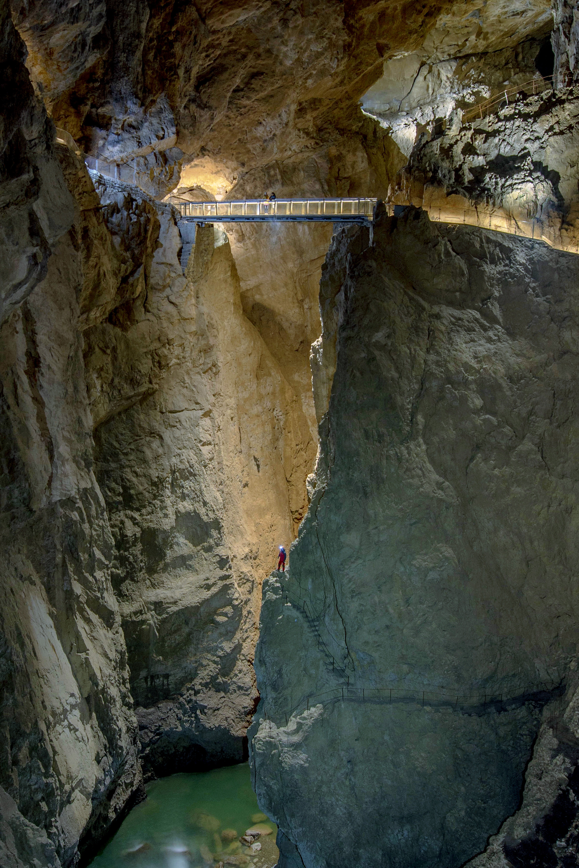 The Škocjan Caves are a system of the largest caves in Classical Karst and a caves with the largest underground canyon in Europe . Because of history, natural fenomena and exceptional vallue the area of Škocjan Caves Park was recognized as a heritage important for the whole world. Throughout its history, it represented a great challenge for daring explorers who, with enormous effort and perseverance, managed to penetrate further into the underground world. The most interesting history of exploration took place with the help of the locals. Already in 1819, the cave was arranged as a tourist cave. More than 12 kilometers of ferrata paths along steep rock walls, sometimes more than 50 meters above the River bed, are an important history, which was recorded by the world's first exploration of the underground.